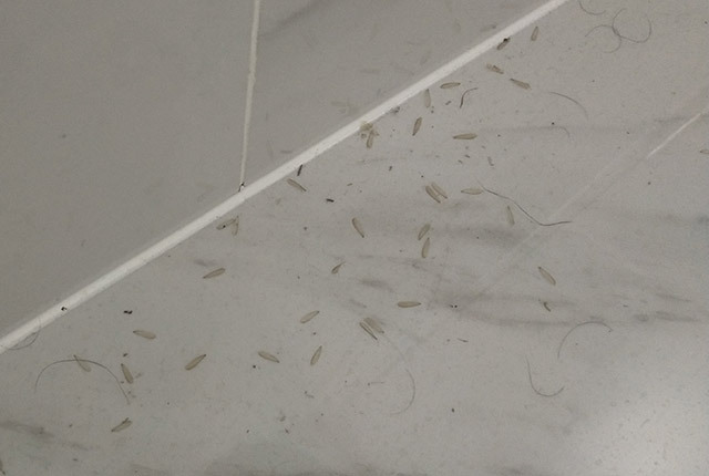 舉個例子上圖是在家中廁所地板上所拍攝的,經審定都是白蟻及有翅白蟻翅膀,白蟻巢穴只要到達8年以上的成熟期,才會有有翅白蟻飛出來。每年的4-6月份有翅白蟻蟻開端分飛,目的就是為了配對繁衍,配對勝利后就會退掉翅膀尋覓適宜的中央筑巢。